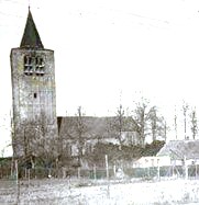 Als de Steenselnaren hun oude kerk in 1798 terugkrijgen, heeft deze heel lang ongebruikt gestaan en is zeer bouwvallig geworden. In 1821 wordt een nieuwe kerk tegen de toren gebouwd. Het is een eenbeukige kruiskerk van 22 bij 9 meter met 140 zitplaatsen. De kerk wordt gebouwd door de bouwkundige P. Clessen uit Eersel voor de som van fl. 4.350,--. Pastoor Johannes Boeren is in 1820 benoemd in Steensel en legt op 12 april 1821 de eerste steen. Hij heeft opgetekend: “dat hij zich door twee lijfwachten moest laten vergezellen op de weg door het bosch, om het geld te beveiligen”. De parochie zit slecht bij kas en regelmatig betaalt pastoor Boeren reparaties aan kerk en sacristie uit eigen zak. Hij heeft in 1823 de eerste pastorie gebouwd. Op de foto zie je, naast de nieuwe kerk uit 1935, de oude kerk uit 1823 nog aan de toren vast staan. Misschien kunnen we in de toekomst de contouren en de funderingen van de oude kerkjes weer voor iedereen zichtbaar maken